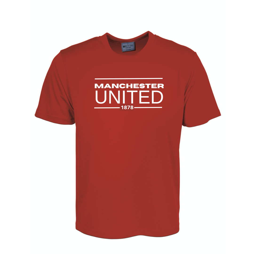 Plain Breezeway Micromesh Tee with Manchester United design heat sealed on front.